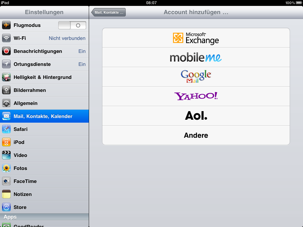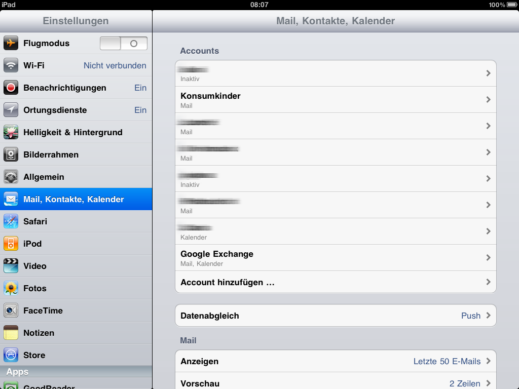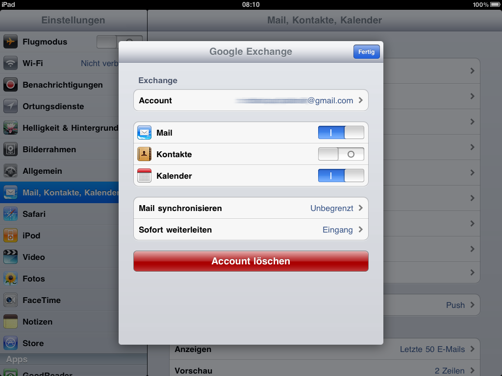 Den Google Account mit der Exchange Funktion des iPad einrichten